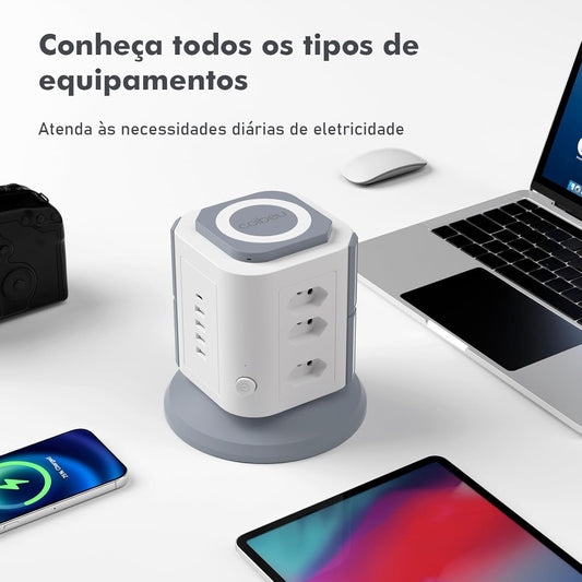 Filtro de Linha, Extensao Eletrica, Extensão Tomada, Torre de Tomada, Régua de Energia, 9 Tomadas, 4 Interfaces USB, 1 Porta USB Tipo-C, Suporte a Tensão de 110-220V, Potência de 2200W