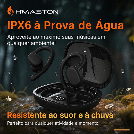 Fone de Ouvido Bluetooth Para Corridas, 96 Horas para Reprodução, Design Esportivo com Display de Led, Gancho De suporte Que Não Cai, Com Microfone Embutido, Perfeito Para Treinos e Exercicíos