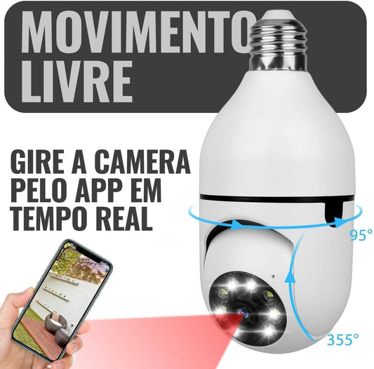 Câmera Segurança Lâmpada Ip Wifi 360° Full HD Inteligente Prova D'água Giratória Visão Noturna Infravermelho Detecção de Movimentos 1080P HD Bivolt Premium