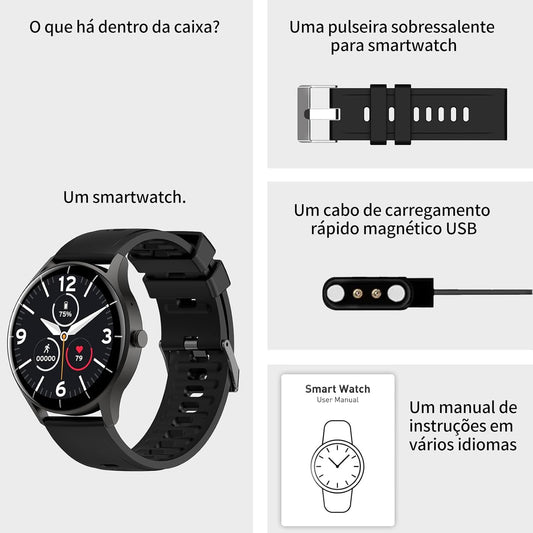 Smartwatch PEJE Relógio Smartwatch com Pulseira Extra - Tela Touch HD 1.28",À Prova d'Água IP68,Faz Chamadas Bluetooth,123+ Modos Esportivos,Bateria de 5-7 Dias,Compatível com iOS/Android.(Preto)
