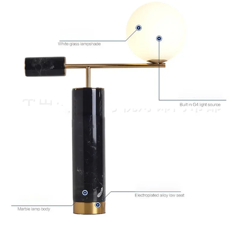 2. Style:Modern bedroom desk lamp creative design G4 marble LED desk lamp