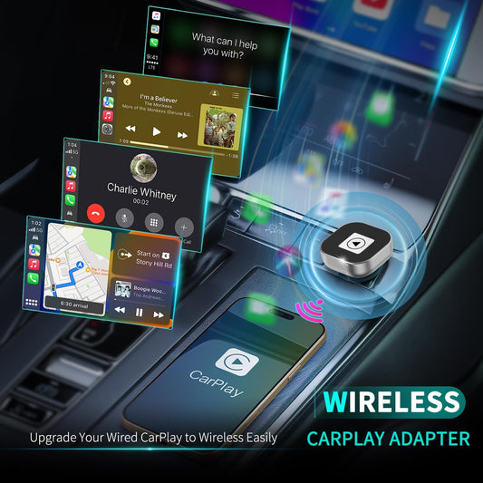 Adaptador de carro sem fio para CarPlay - Conversão instantânea de com fio para sem fio, Plug & Play, design mini estável, compatível com iPhone iOS 10+ e veículos com CarPlay com fio