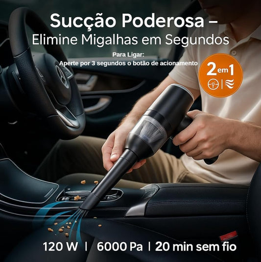 Aspirador de Pó Portátil 2 em 1 6000Pa — Aspirar e Soprar, USB Recarregável, Filtro HEPA Lavável, para Carro, Teclado e Casa